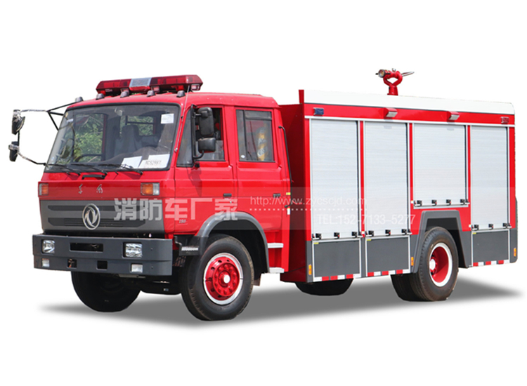 泡沫消防車同水罐消防車的結構基本相同,不同的地方是,罐體是隔開的,一部分裝泡沫一部分裝水,另外在消防泵上安裝的有泡沫混合比例器,車頂上使用的兩用炮,可以打水也可以打泡沫。