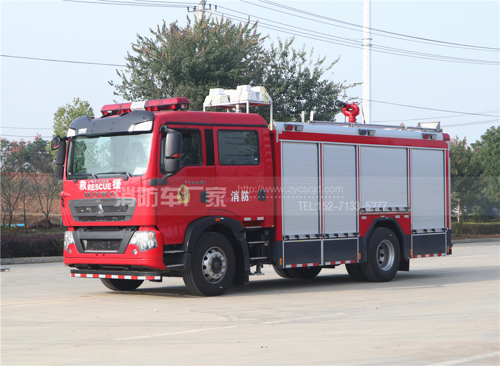 豪沃單橋城市主戰(zhàn)消防車采用中國(guó)重汽集團(tuán)濟(jì)南卡車股份有限公司生產(chǎn)的ZZ5207TXFV471GF5型二類汽車底盤, 該車原裝雙排駕駛室,可載含駕駛員在內(nèi)的乘員6人,駕乘舒適輕便。該車采用DC-CAFS60/45M型集成壓縮空氣泡沫滅火系統(tǒng),該壓縮空氣泡沫系統(tǒng)操控簡(jiǎn)易,泡沫生成實(shí)現(xiàn)即時(shí)全自動(dòng)微機(jī)精確調(diào)控,并設(shè)多重保護(hù)與報(bào)警系統(tǒng),消防作戰(zhàn)員可依據(jù)復(fù)雜的火場(chǎng)情況,方便地借助按鈕選擇干泡沫、濕泡沫等不同類型的泡沫滅火方式。該套系統(tǒng)不僅裝有A類泡沫原液,還裝有B類泡沫原液,可高效率地?fù)錅绾涂刂艫、B類物質(zhì)火災(zāi),并具備良好的環(huán)保性能。另外該車配置有牽引電動(dòng)絞盤,7.6米氣動(dòng)升降舉升4*1000w照明燈和10.5kw車載發(fā)電機(jī),使得該車還可獨(dú)立開展偵查、破拆、救生、照明、防護(hù)等綜合搶險(xiǎn)救援功能。